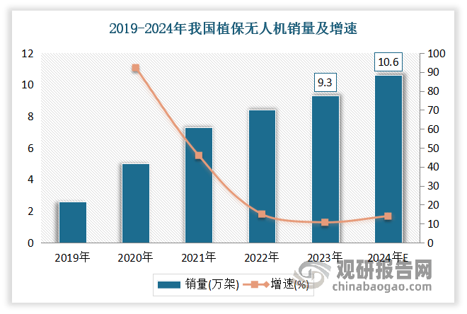 近年跟着科技的飞速成长,植保无人机正成为农业范畴的抢手话题。做为现代农业手艺的新兴代表,植保无人机凭仗其经济、环保等劣势,逐步获得了泛博农人伴侣和农业企业的承认。按照数据,2023年我国植保无人机销量达9。3万架,较上年同比增加10。71%。估计2024年我国植保无人机销量达10。6万架,较上年同比增加13。98%。