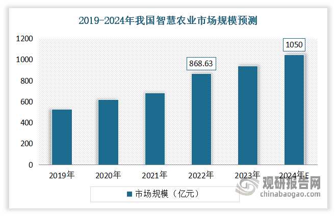 近年得益于我国全方位政策盈利支撑、财务投入不竭添加,我国聪慧农业市场快速成长。数据显示,2022年我国聪慧农业市场规模为868。63亿元,同比增加约26。81%。估计到2024年我国聪慧农业市场规模达到到1050亿元。