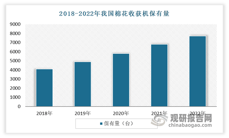 我国是棉花种植及利用大国,为棉花种植机械供给了不变的成长保障。近年受益于优良的政策,我国棉花出产全面、全程机械化历程持续加快。当前正在棉花种植的耕、种、收全过程机械化成长程度上,机耕、机种程度均达到较高程度。到2022 年我国棉花种植分析机械化率为 88。50%。估计将来以棉花收成机为代表的高端农机配备是将是棉花种植机械范畴沉点成长产物。棉花种植机械次要指棉花种植过程中涉及机械化设备的总称,包罗棉花种植的耕整地(耕)、种植施肥(种)、田间办理(管)和收成(收)等环节机械化设备。目前棉花种植机械次要有棉花播种机、棉花拖沓机、棉花采摘机、棉花打顶机械人等设备。近年来,国度和新疆处所出台了多个农业现代化、农业机械化、农机配备、配备制制等相关政策,陪伴相关政策的落实,为棉花种植机械行业的成长供给了优良的政策支持。例如2025 年1 月,国度发改委发布《西部地域激励类财产目次(2025 年本)》,提出新疆维吾尔自治区(含新疆出产扶植兵团)新增激励类财产包罗:农林牧草等做植、养殖、精湛加工、采收等机械化手艺开辟及使用,以及相关农牧机械设备拆卸和相关零部件的开辟、制制。棉花正在我国国平易近经济中拥有主要地位,是关系国计平易近生的主要计谋物资。棉花财产也是部门地域农村经济的支柱性财产和农人收入的主要来历。因而,棉花财产的不变成长对保障平易近生、保障农人收入、推进就业意义严沉。我国是棉花种植及利用大国。受种植效益和种植布局调整等要素影响,自2019年起我国棉花播种面积呈现下降态势,2023年达到2788。14千公顷(约为4182。21万亩),相较2018年削减566。27千公顷(849。4万亩)。产量方面,受棉花种植面积、天然等要素的影响,2019-2023年我国棉花产量呈现波动变化态势。按照国度统计局的统计数据,2023 年中国棉花产量为 561。80 万吨,同比下降 6。06%。虽然棉花播种面积持续下滑、产量增加波动变化,但跟着种植手艺和办理程度提拔,近年来其单元面积产量却呈现全体增加的态势,由2019年的1763。56公斤/公顷上升至2023年的2014。9公斤/公顷。取此同时,目前我国棉花种植向劣势产区集中趋向较着。目前新疆地域种植面积处于国内绝对领先地位,且正在全国的比沉逐年上升。数据显示,2023 年新疆棉花种植面积 3,553。96 万亩,占比达到了84。98%,产量占比达到91%。其次湖北、别离处于二至四位,种植面积合计占比为 10。25%。棉花做为计谋物资,其种植环境持久遭到国度高度关心,将来我国棉花种植将连结正在较高的程度。同时目前,我国国内棉花产量尚无法完全满脚下逛棉纺织业产能需要,每年需从国外进口大量棉花。正在我国棉花大量依赖进口的布景下,国产棉花的计谋价值凸显。此外,将来新疆地域仍是我国棉花种植焦点地域,种植集中趋向较为较着。因而,为国产棉花供应链的自从可控,将来我国将持续鞭策本本地货业链自从成长,棉花种植全程机械将持续受益于我国棉花财产的成长以及棉花种植采收机械化程度的提拔。近年跟着政策鞭策,我国棉花出产全面、全程机械化历程持续加快。当前正在棉花种植的耕、种、收全过程机械化成长程度上,机耕、机种程度均达到较高程度。数据显示,2022 年我国棉花种植分析机械化率为 88。50%。此中次要环节机耕和机播机械化程度别离为 99。11%和 90。33%,机收率为 72。51%。2023年,新疆投入近7000台采棉机开展机械化采收功课,机械化采收率由2014年的35%提拔至2023年的85%以上。但正在收成环节机械化率程度仍有待进一步提高。如上图所示,2022 年我国棉花机收率还只要72。51%,取棉花机耕率以及棉花机播率有着较大差距。可见棉花机采市场仍然存正在较大的市场空间。此外,因为国产棉花收成机行业成长时间相对较短,晚期产物受产物设想、出产工艺等方面的,同时,国内市场还存正在较多老旧二手进口机械,跟着利用年限的添加,也存正在工做效率低、维修难度大、调养费用高档方面的短处,因而,国内棉花收成机市场对存量产物升级/更新换代的需求十分强烈。陪伴农做物全面、全程机械化及棉花种植全程机械化历程的持续推进,将来我国棉花种植各环节机械化率也将持续提拔,为我国棉花种植机械行业的成长供给了动力。以棉花收成机为代表的高端农机配备是将来农机配备范畴沉点成长产物,优良的政策成长为我国以棉花收成机为焦点的棉花种植机械行业成长创制了有益前提。近年来跟着我国鼎力鞭策棉花财产提质增效和高质量成长,下逛市场对棉花质量程度、农机配备高质量转型升级提出了更高的要求,棉花收成机市场需求连结兴旺。特别是2022 年,跟着国度政策的持续支撑、国产物牌打包式棉花收成机市场承认度的提拔,打包式棉花收成机市场需求日趋兴旺,同时,受国三升国四等要素影响,由国产物牌打包式棉花收成机从导的国内棉花收货机市场呈现出快速增加态势,全体市场更新换代历程加速,销量大幅增加。2023 年是我国农机行业全面步入国四时代的第一年,受 2022 年“国三”升“国四”的提价预期,以及行业促销去“国三”库存导致的 2023 年市场需求被提前等要素影响, 2023 年我国棉花收成机市场有所回落。不雅研演讲网发布的《中国棉花种植机械行业现状深度研究取成长前景预测演讲(2025-2032年)》涵盖行业最新数据,市场热